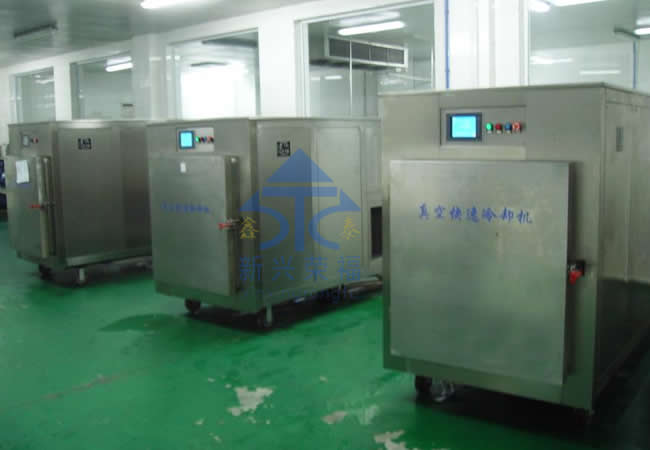 由于食品適宜細菌繁殖的溫度帶是 20--65 ℃ 。真空快速冷卻能夠迅速降低熟食品出鍋后的熱量,防止高溫下的食品氧化,同時由于食品在密封的真空環(huán)境下快速冷卻,可以避免空氣中細菌再次污染。 從而延長保質(zhì)期。