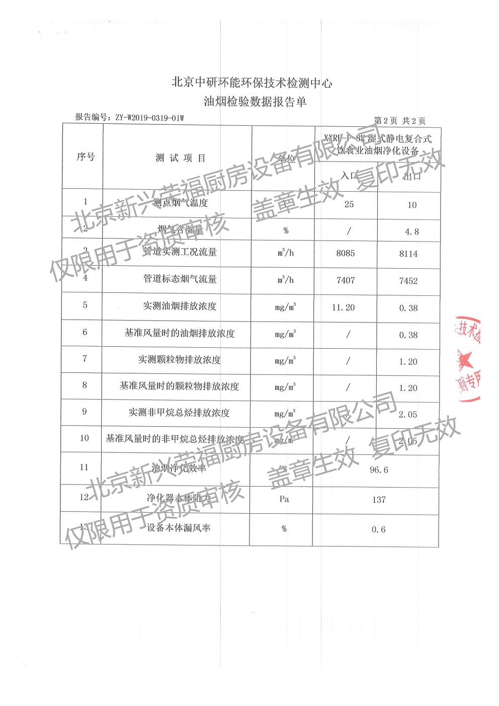 1、凈化率高達96%,優于DB11 1488北京地標-餐飲業大氣污染物排放標準。經實際使用和第三方檢測機構檢測結果如下:油煙濃度:0.38mg/m3;顆粒物濃度:1.20mg/m3;非甲烷總烴濃度:2.05mg/m。